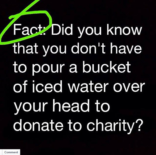 We are all capable of making a donation to ALS or any other charity without using ice water, a video camera, or anyone else.